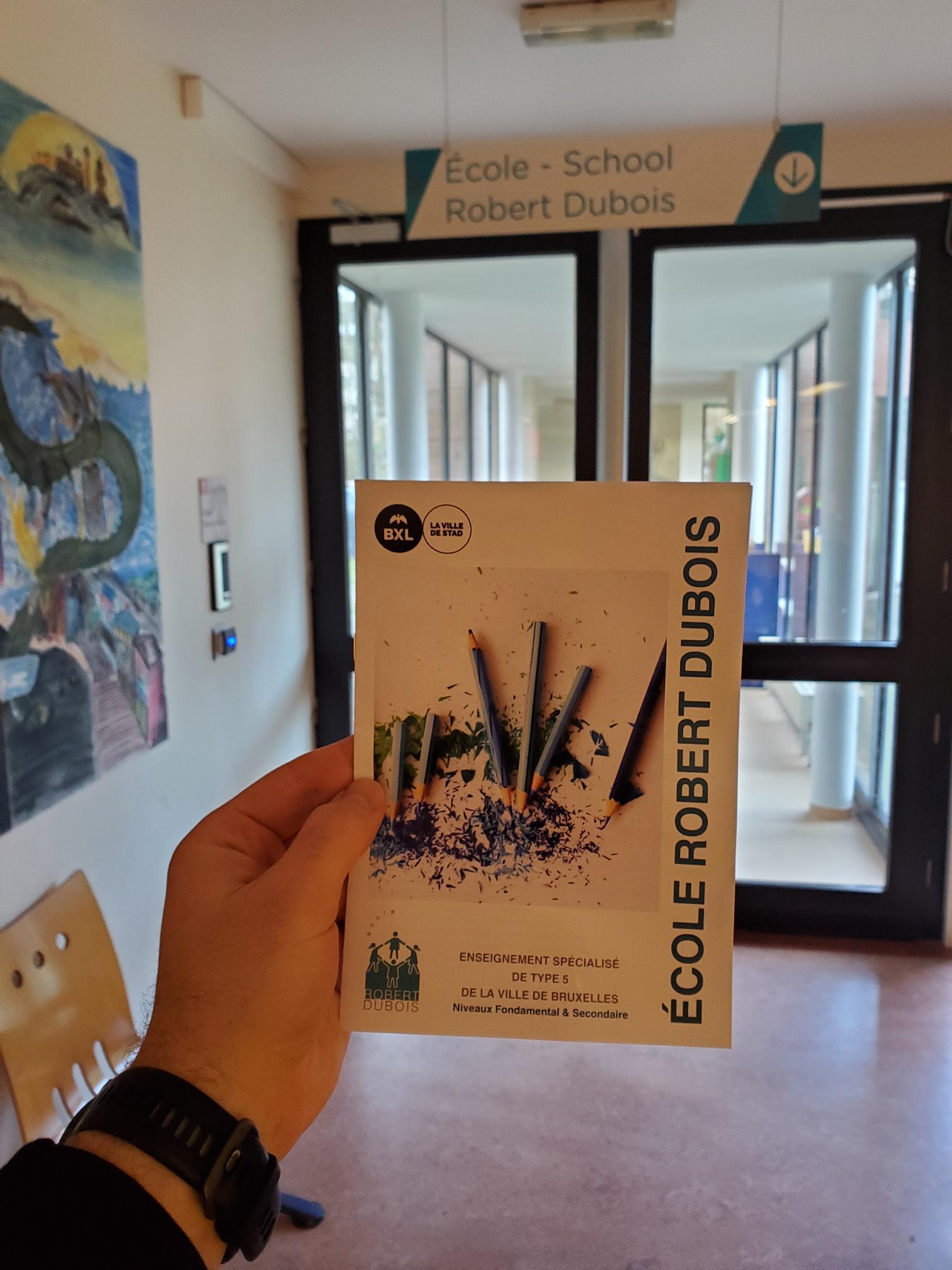 L’École Robert Dubois est ce qu’on appelle une école à l’hôpital. Elle propose un enseignement spécialisé de type 5 et accueille tous les enfants en obligation scolaire, à partir de 2 ans et demi jusque 21 ans. L’objectif principal de l’École R.B de la Ville de Bruxelles est d’accompagner les enfants malades, hospitalisés ou en convalescence dans leur parcours scolaire et de les maintenir à flot dans la vraie vie. Depuis fin 2022, elle est subdivisée administrativement en deux : le Centre scolaire Robert Dubois (fondamental) et Robert Dubois Secondaire. L’enseignement qu’elle propose est réalisé sur 7 implantations : l’H.U.B (Huderf et Erasme), l’Unité de jour pour jeunes enfants, les Ados de Robert Dubois, le C.H Jean Titeca, le C.H Le Domaine (ULB) et le Centre Ados (l’Équipe ASBL).